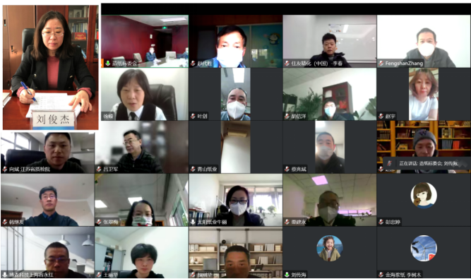 2022年12月27日至28日,全國造紙工業(yè)標(biāo)準(zhǔn)化技術(shù)委員會(huì)(以下簡稱造紙標(biāo)委會(huì))第五屆五次會(huì)議以視頻會(huì)議的形式順利召開。出席本次會(huì)議的領(lǐng)導(dǎo)有國家市場監(jiān)督管理總局標(biāo)準(zhǔn)技術(shù)管理司食品消費(fèi)品標(biāo)準(zhǔn)處馬勝男處長;造紙標(biāo)委會(huì)主任委員、中國造紙協(xié)會(huì)趙偉理事長;造紙標(biāo)委會(huì)副主任委員、中國輕工業(yè)聯(lián)合會(huì)郭永新秘書長;造紙標(biāo)委會(huì)副主任委員、保利中輕總經(jīng)理助理、中國造紙?jiān)憾麻L孫波;以及標(biāo)委會(huì)委員、標(biāo)準(zhǔn)編制組專家、起草單位代表、秘書處工作人員共190余人出席了會(huì)議。會(huì)議由造紙標(biāo)委會(huì)秘書處承擔(dān)單位中國制漿造紙研究院(以下簡稱中國造紙?jiān)海└笨偨?jīng)理劉俊杰主持。
