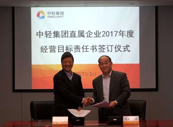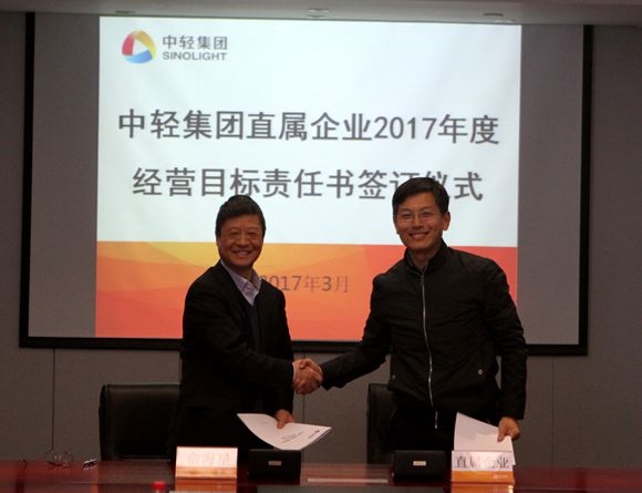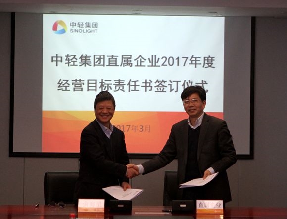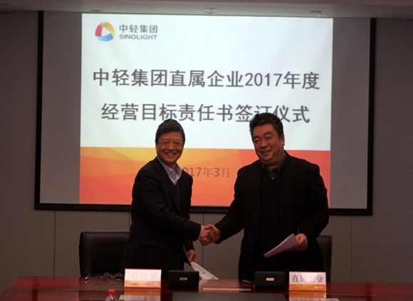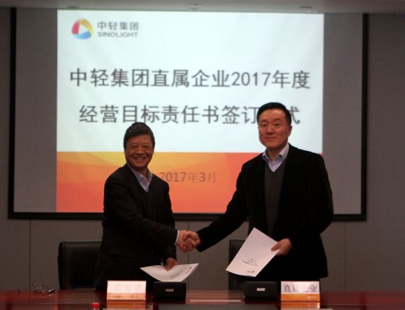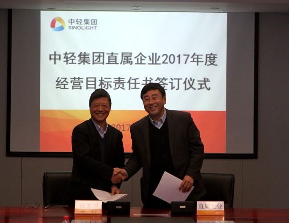 集團(tuán)公司總經(jīng)理俞海星與中輕控股總經(jīng)理錢小林簽訂經(jīng)營(yíng)目標(biāo)責(zé)任書